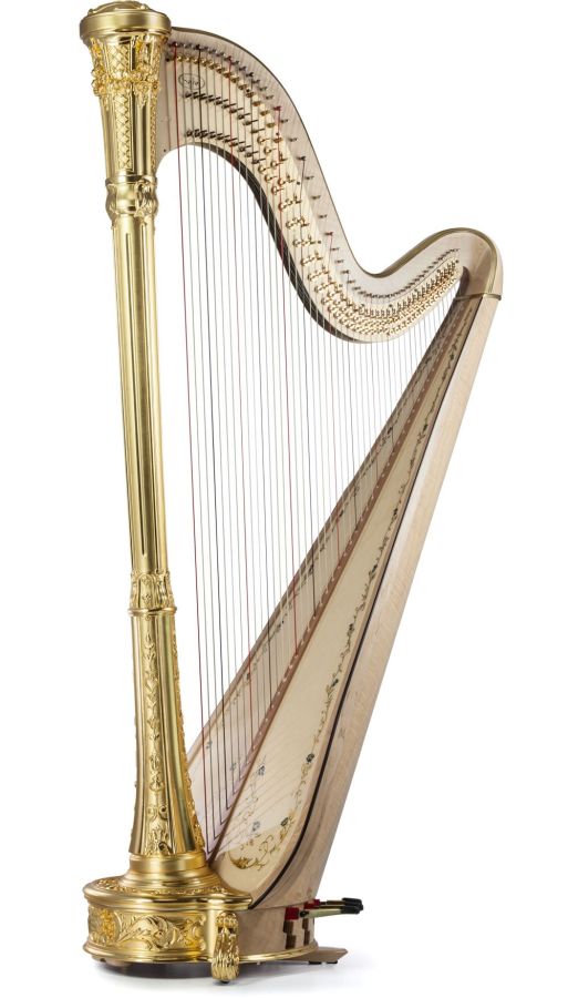 This majestic harp is finely sculpted and glows in the light of 23-carat gold. A resounding timbre and captivating aesthetics make this prestigious Salvi harp the ideal instrument for orchestras and discerning soloists. A limited edition work of art, unique and inimitable.