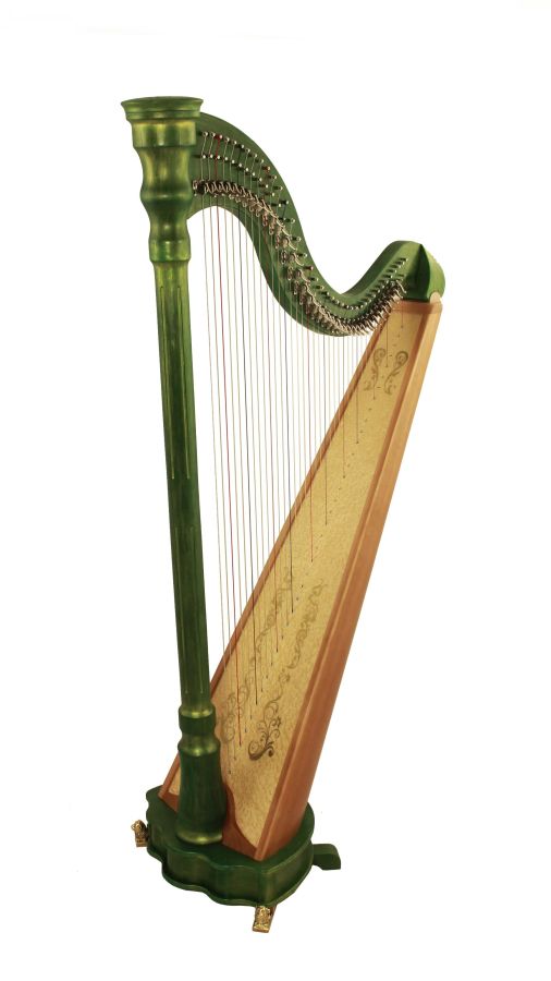 A lever harp designed like a concert harp. Turmalin is available in different variations: A variety of elegant columns. Optional refined with gold or silver.